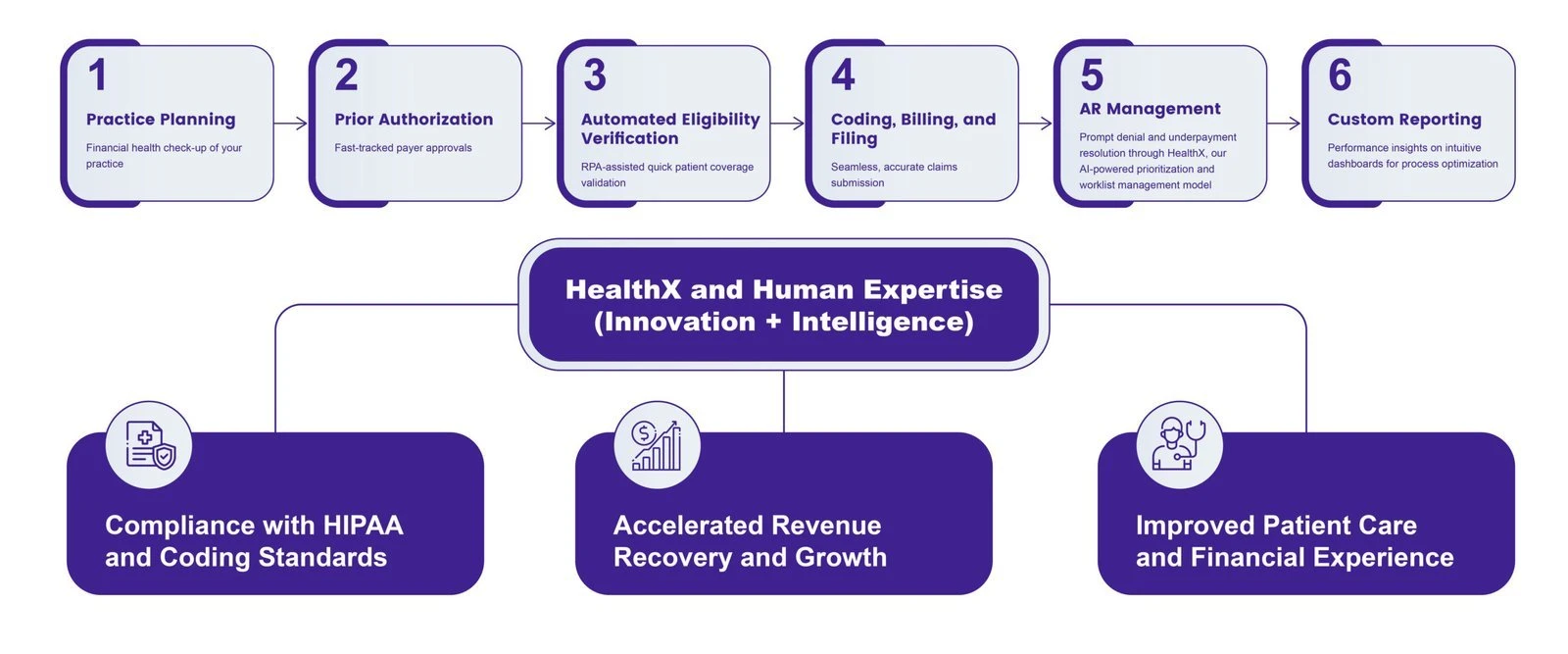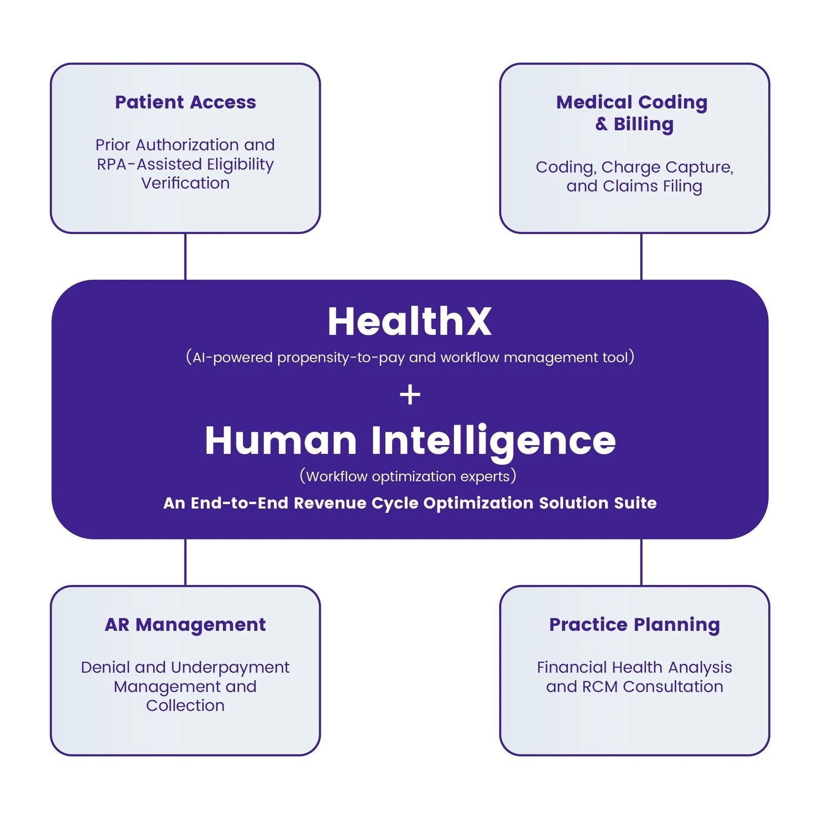 - Actionable Insights Powered by HealthX and Intuitive Dashboards - Our HealthX-powered workflows build client-specific decision trees to create guardrails for clients, prioritize claims based on their propensity to get paid, and leverage intelligent dashboards to generate revenue, quickly.